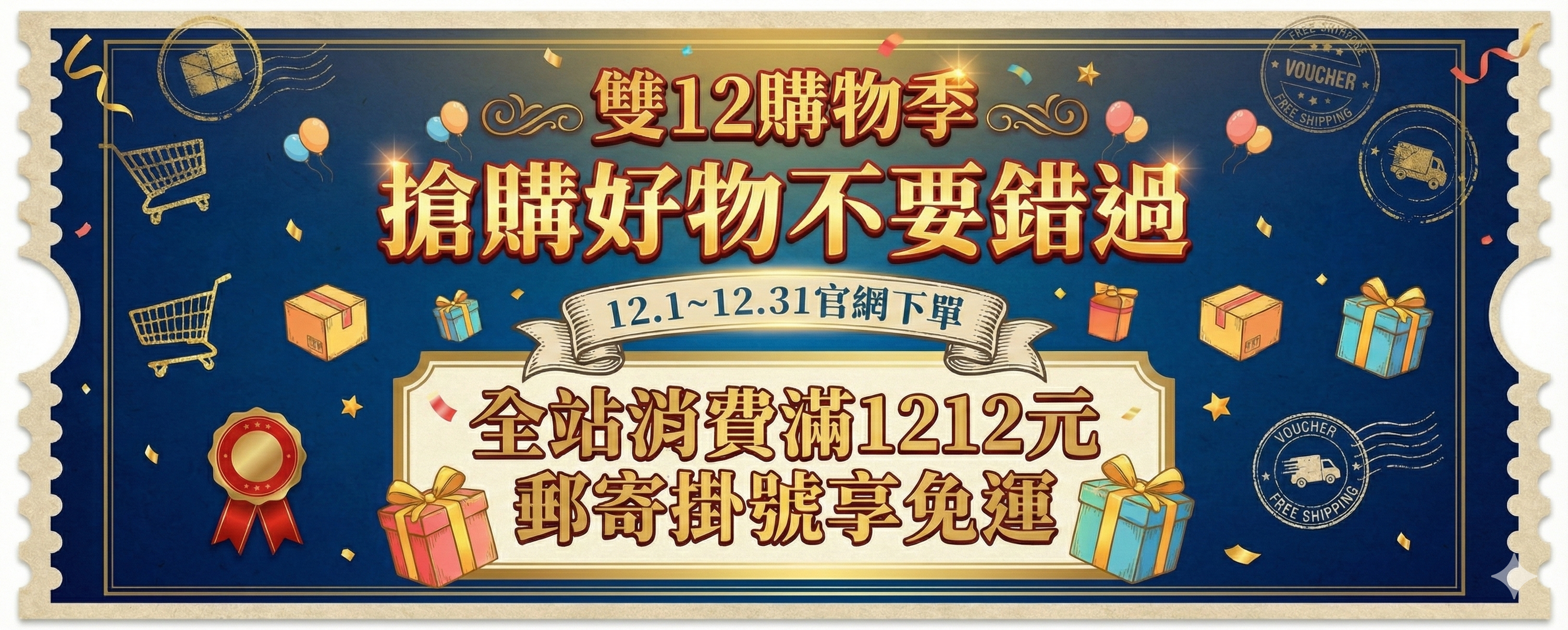 雙12購物季🎉 12/1-12/31 全站消費滿1212 郵寄掛號免運