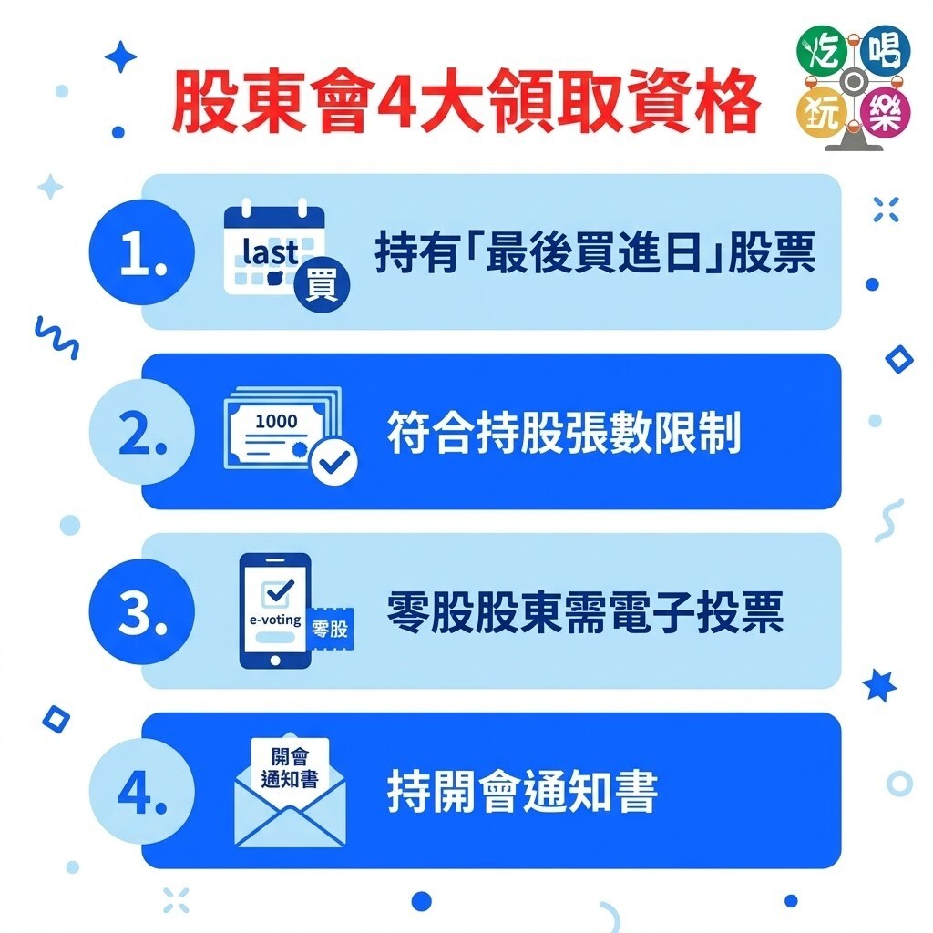 3.零股股東需電子投票若你是持有未滿1,000股的零股股東,一般而言,得須參與「股東會電子投票」,才能透過線上或憑電子投票畫面領取紀念品。