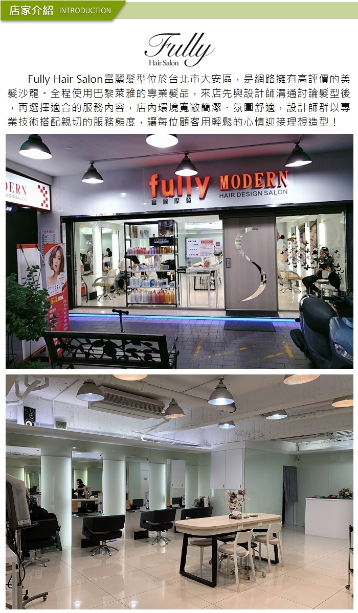 Fully Hair Salon富麗髮型位於台北市大安區,是網路擁有高評價的美髮沙龍。