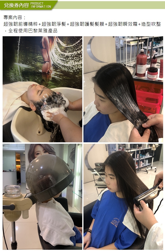2.專案內容包含:超強韌前導精粹 + 超強韌淨髮 + 超強韌護髮髮膜 + 超強韌瞬效霜 + 造型吹整,全程使用巴黎萊雅產品(以上內容限乙次使用完畢)