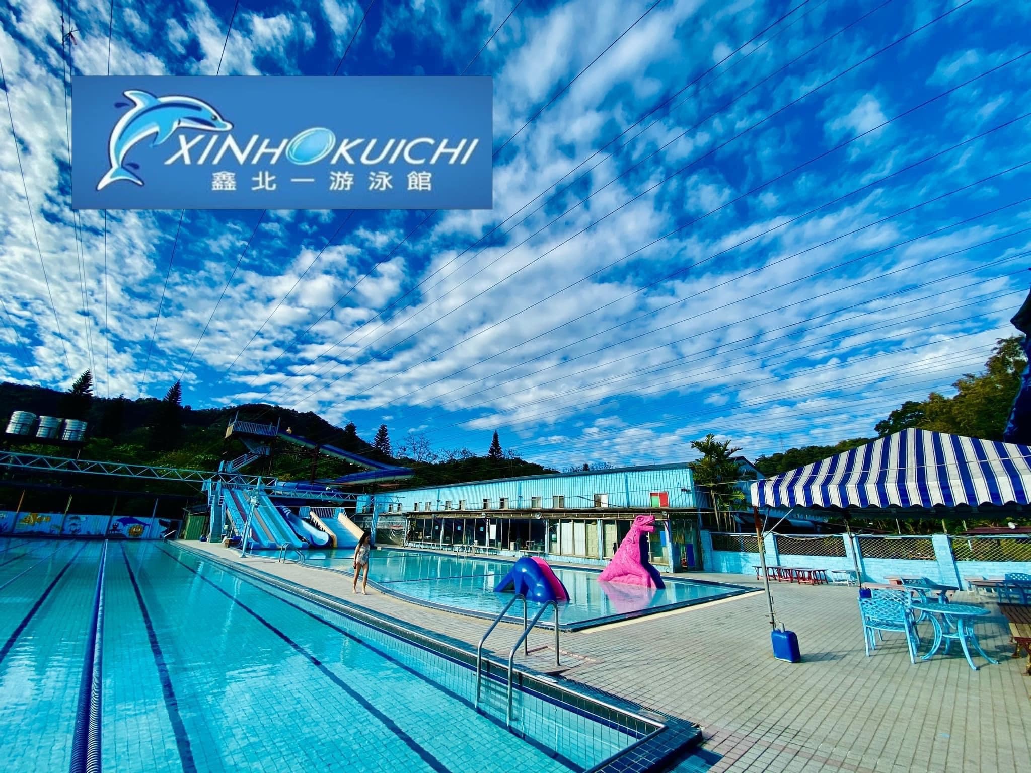 鑫北一游泳池位在新北中和烘爐地山下,擁有室內外標準泳池、室內SPA、烤箱、蒸氣、健身房等設施,戶外還有戲水池、滑水道、水霧,以及假日限定香蕉船。戶外戲水池有3個單人滑水道、1個寬滑水道以及360度旋轉滑水道,滑下去的速度快又好玩,小朋友能玩上好幾趟,另一側還有給小小孩玩的幼兒溜滑梯,大小朋友都能開心玩。