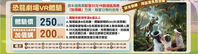 【憑本賣場優惠票即享50元VR劇場抵用券「加購價方案」,限當日預約使用】