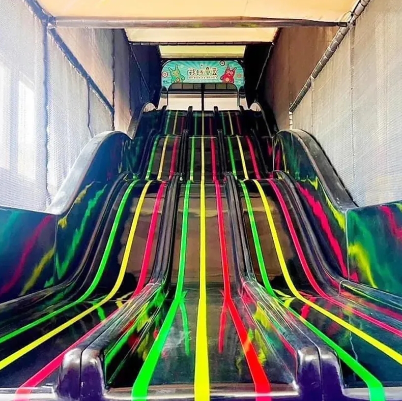 🌈 全台最高的彩虹夢幻三滑梯,體驗從彩虹燈光瀑布滑下的刺激快感,讓小朋友挑戰腎上腺素激發的極速體驗。