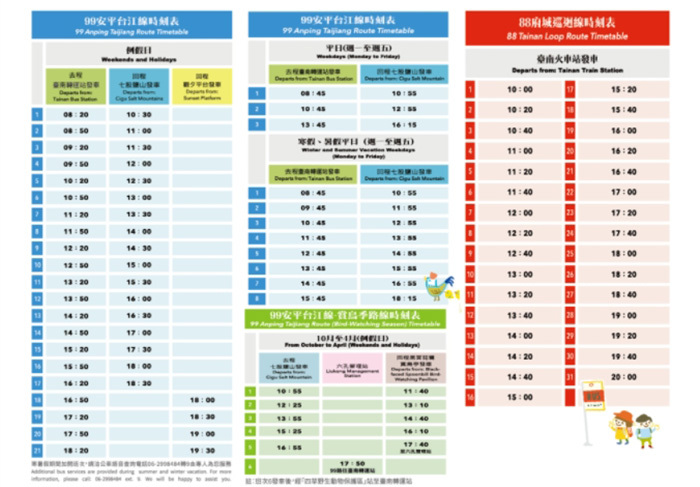 9. 營業時間:台灣好行班次時間請參照大台南公車官方網站公告。