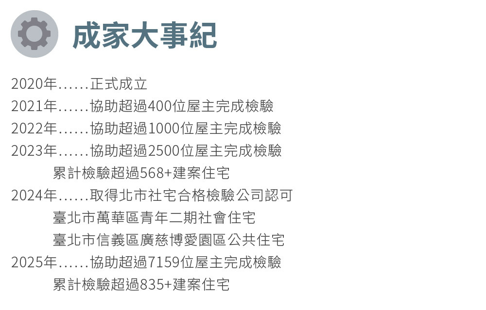 為全台第一間具備自建房屋能力的驗屋團隊。我們長期關注居住空間品質議題。