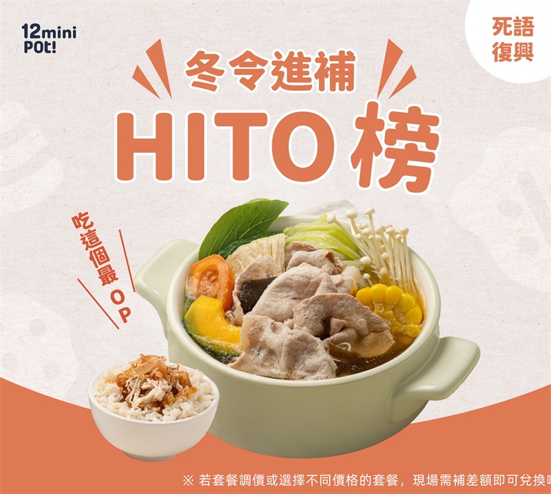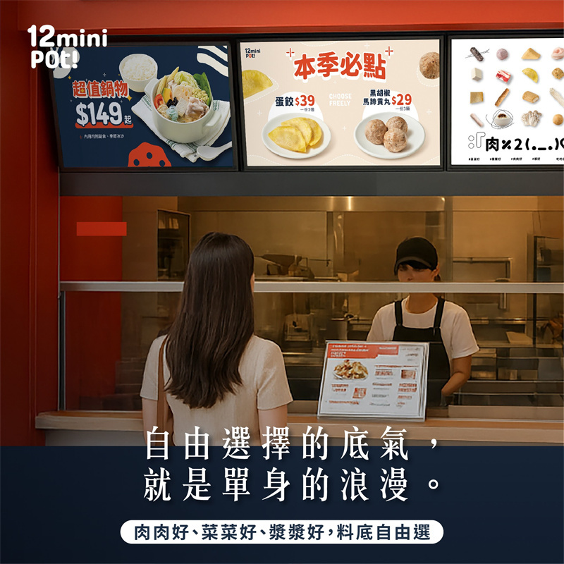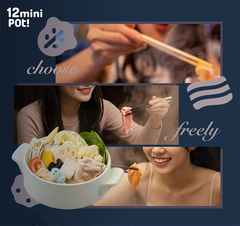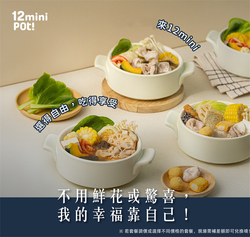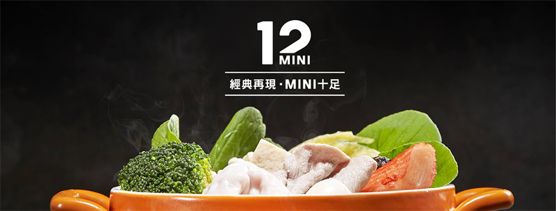 12mini在料理台上不斷鑽研,嘗試過上百種配方組合,拿捏完美的食材比例,打造屬於12mini特色的濃郁湯頭。多種味型,一次滿足。給您精巧、方便外帶的精緻小火鍋。每季推出季節限定新品,不斷創新,滿足您的味蕾。