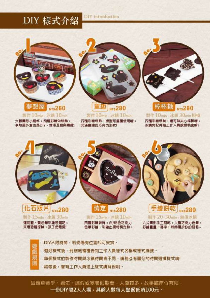 ⮩巧克力DIY*1份(現場挑選巧克力DIY型式-夢想屋、童趣、棒棒糖、化石版片、情定、手繪餅乾六選一)