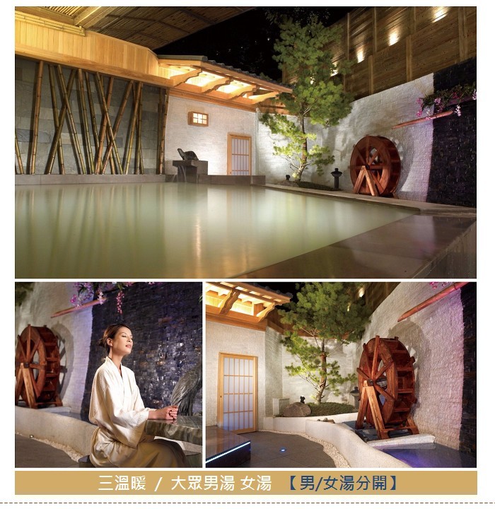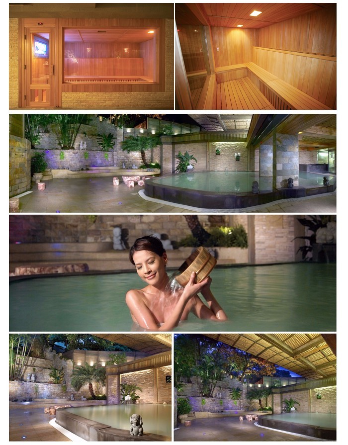 ●溫泉裸湯、檜木烤箱、露天泳池