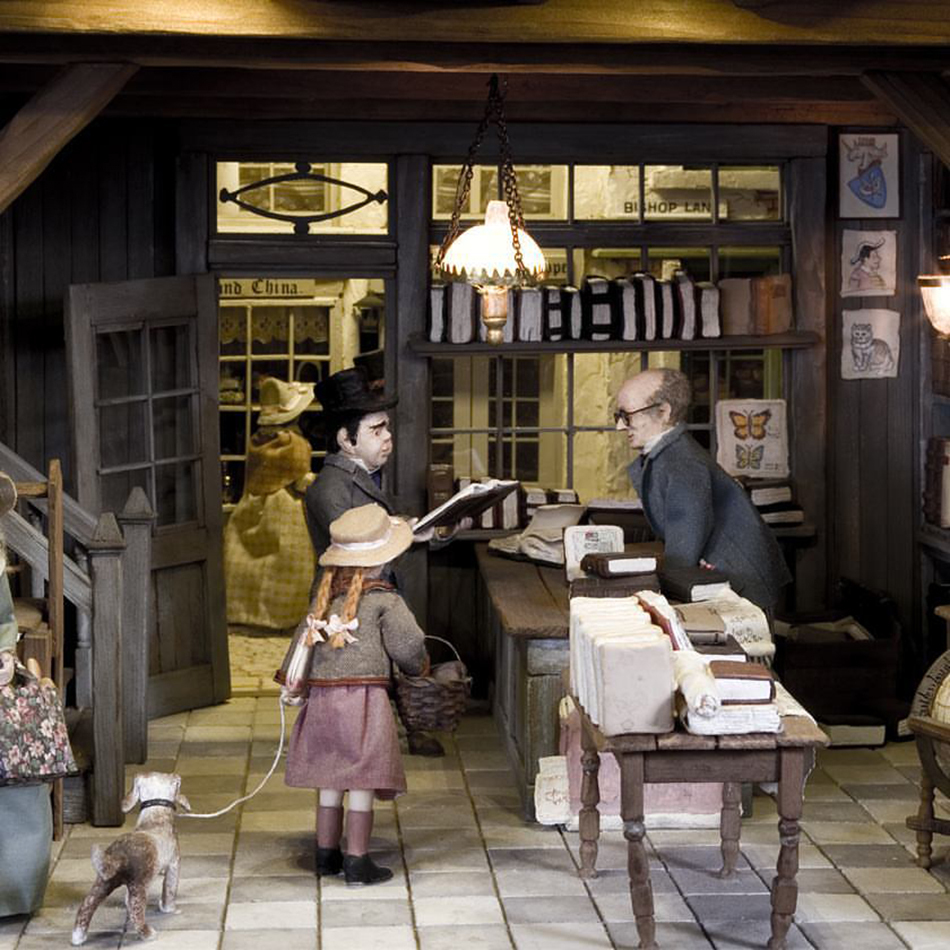 古董書店裡,小女孩牽著狗跟爸爸的腳步一起走進書中世界!