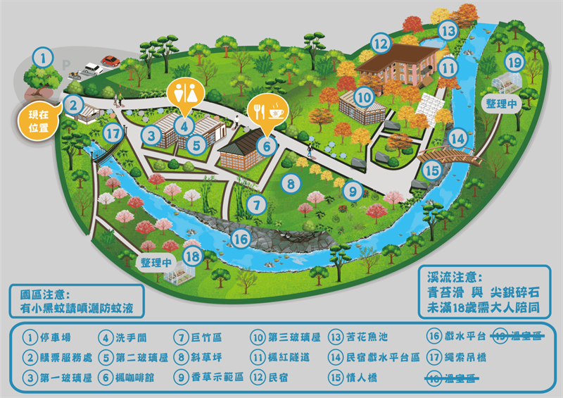 2. 請共同維護自然生態,請勿攀折花木或捕捉生物。