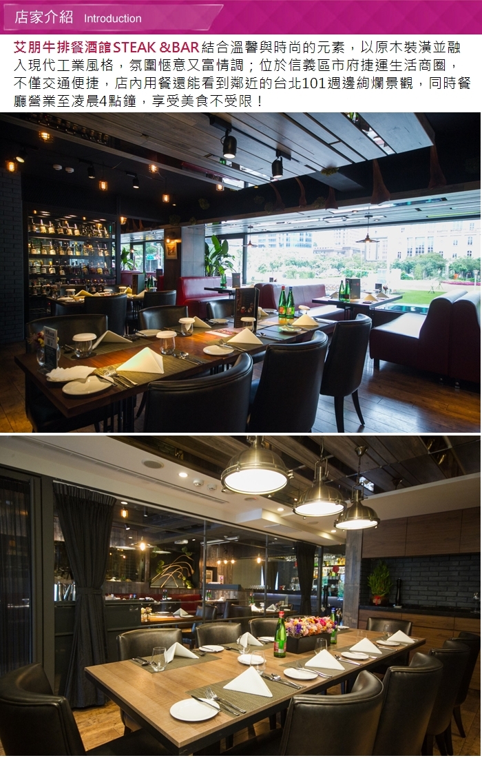 1.單張可1人於《艾朋牛排餐酒館市府店》享用精選套餐乙客。(已含服務費)