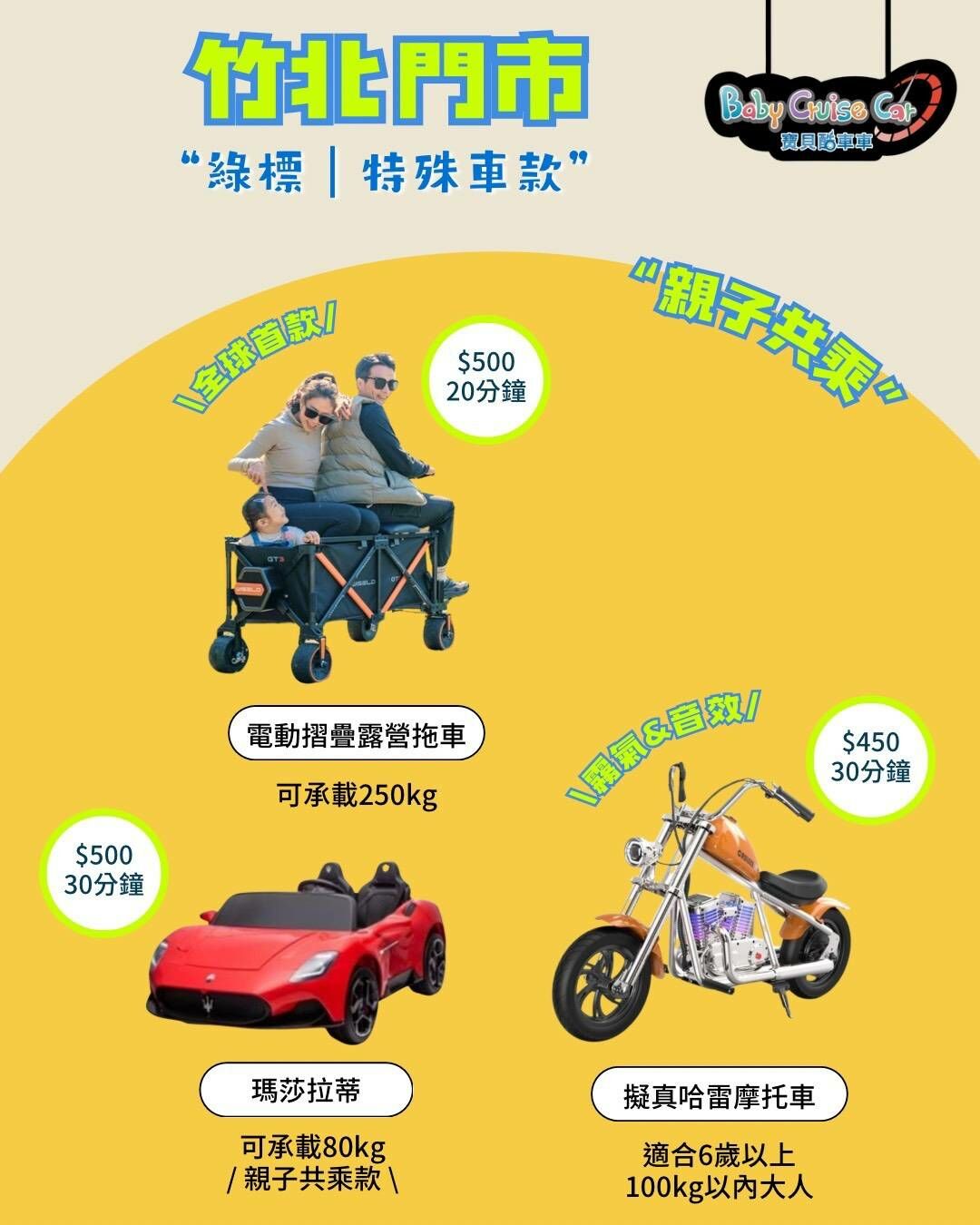 🔽新竹竹北門市,綠標$500/30分鐘車款