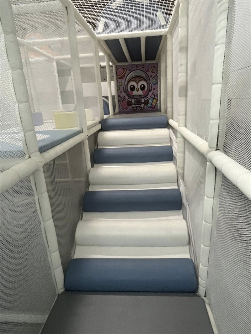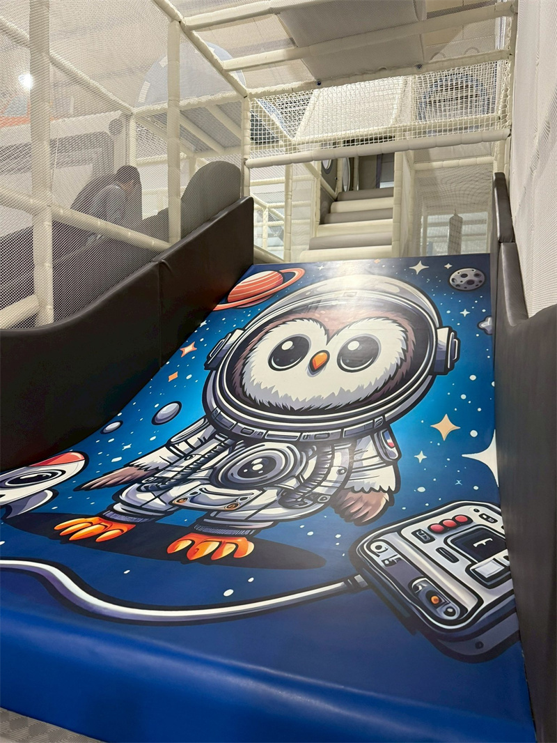 兒童遊戲區設計上帶點科技感,太空貓頭鷹逗趣又可愛;小朋友可以玩🎈百萬大球池、🛝瀑布溜滑梯、旋轉溜滑梯、🖥️VR投影互動遊戲、🎯各種多種體能障礙闖關、🏝️陶粒戲沙池、挖沙玩具等;平假日皆不限時,盡情放電,回家很好睡。