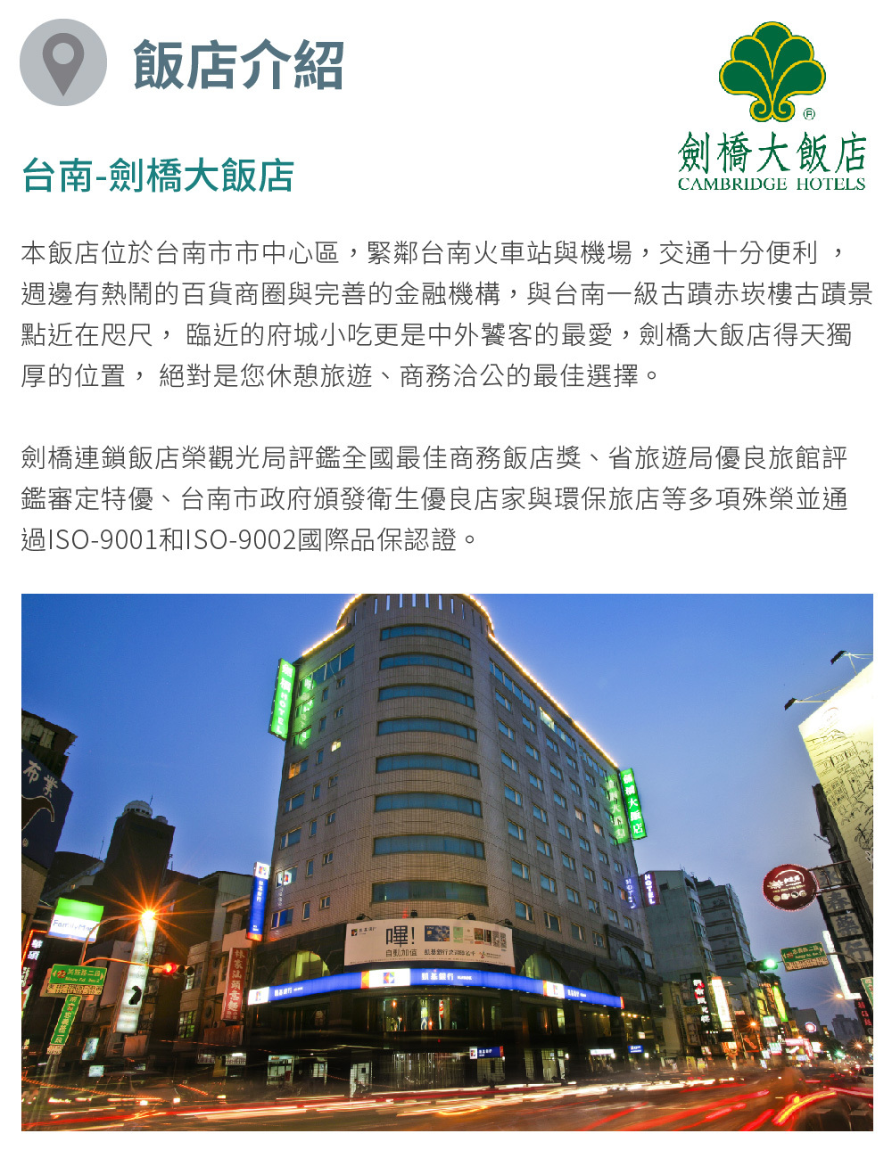★劍橋台南館豪華雙人房住宿乙晚(假日不加價)