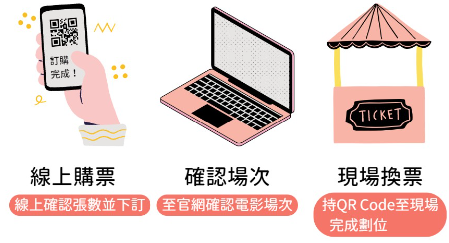 核銷方式:請至售票口出示QR Code完成劃位,並兌換小杯可樂+小份爆米花。(此方案不適用於網路劃位)
