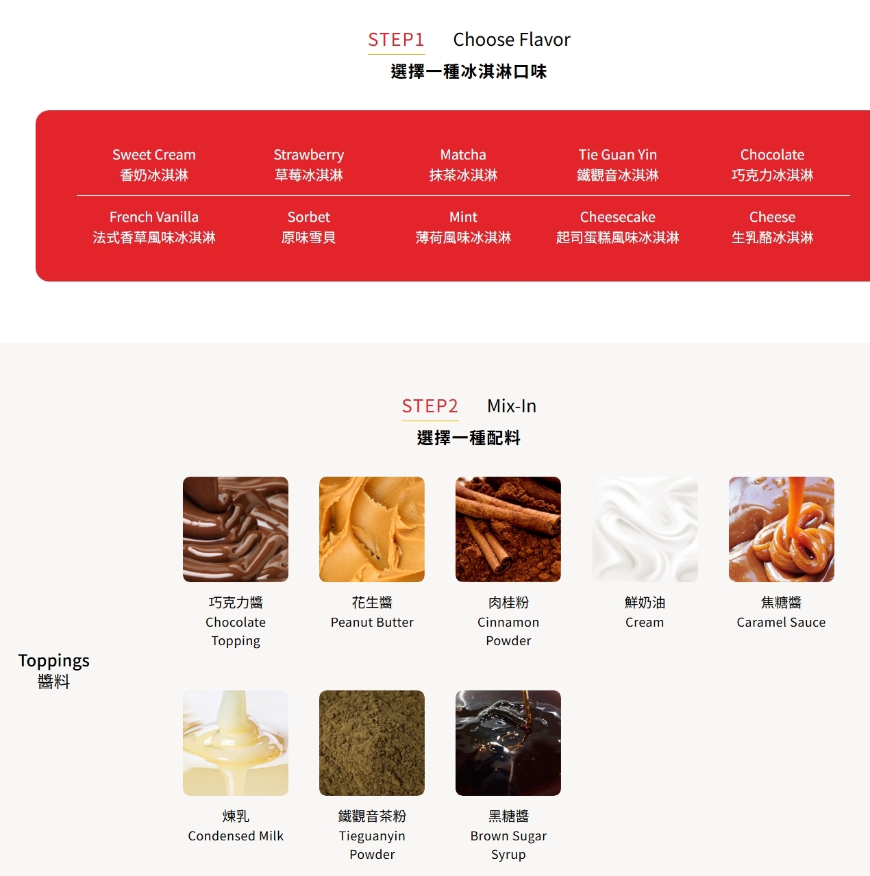 先選擇喜歡的美味冰淇淋口味,再自由搭配如水果、堅果、餅乾到布朗尼等豐富配料,緊接交給 COLD STONE 的夥伴幫您在獨有的 -9度C 的花崗岩石板「Mix-In」你的專屬口味。COLD STONE CREAMERY 被喻為是”世界上最無與倫比的冰淇淋體驗”與最受全球矚目的創新體驗服務。