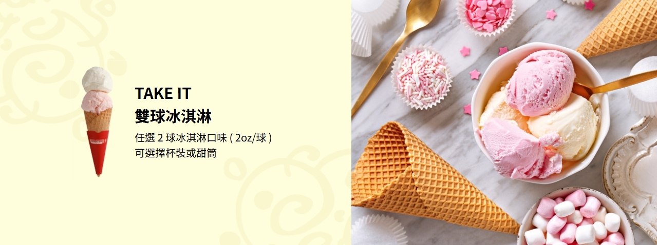 新台幣120元之Take It 雙球冰淇淋含原味甜筒乙份 (容量4oz)。