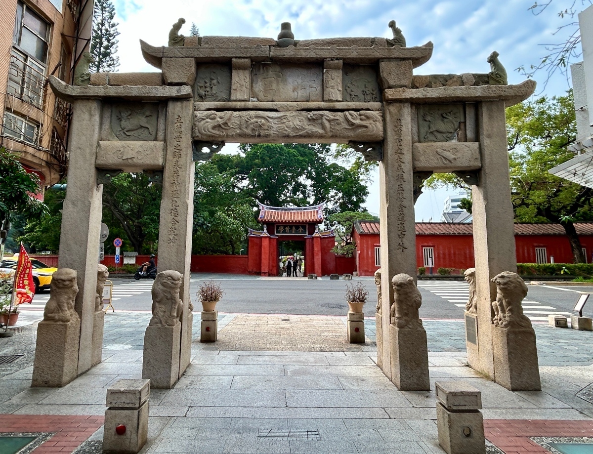 「泮宮石坊」,原本是臺南孔廟最外圍的入口。日治時期,因爲闢建南門路而往東推移。現在與孔廟「全臺首學」大成坊隔南門路相望。