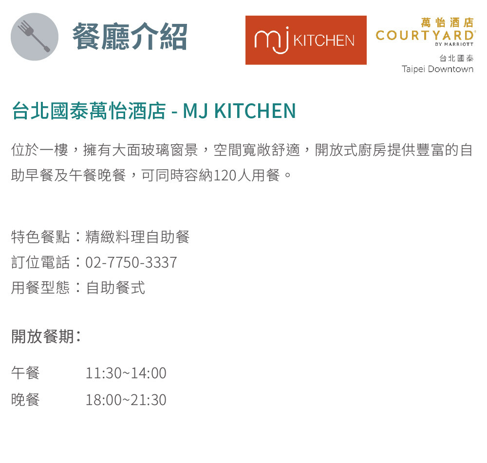 台北國泰萬怡酒店-MJ KITCHEN 電話:02-7750-3337