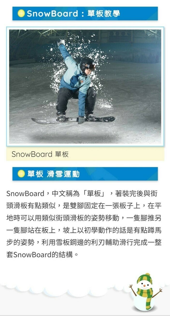 課程包含|遊園+雪板+雪鞋+場地費及教練共1小時+防摔套組