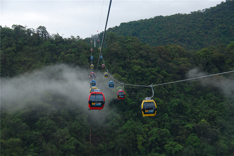 台灣第一座輕載量空中纜車系統,距地面40公尺,車廂明亮寬敞,微風徐徐,除帶您鳥瞰九族文化村全區美景,還可連結至日月潭纜車,全長1.877公里,讓您7分鐘看遍日月潭湖光山色和九族的山林之美。
