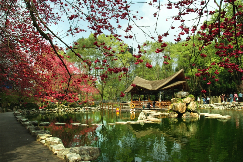 九族文化村更是台灣最大的賞櫻熱門景點,每逢花季,5000多棵櫻花相繼綻放、美不勝收,吸引大批賞花人潮共襄盛舉。