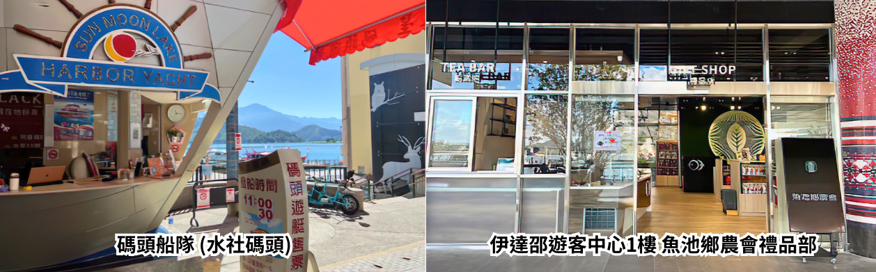 3.伊達邵遊客中心1樓(魚池鄉農會禮品部):南投縣魚池鄉日月村文化街127號1樓