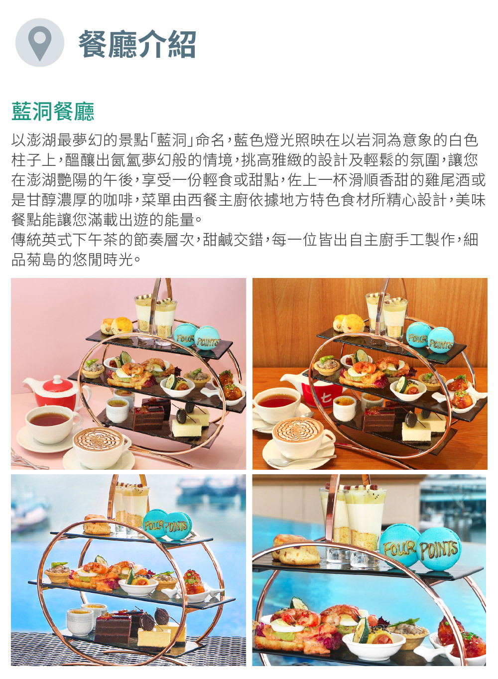 藍洞經典下午茶的層次豐富,主廚精選時令食材手工製作,甜鹹交錯,細品菊島的悠閒時光。