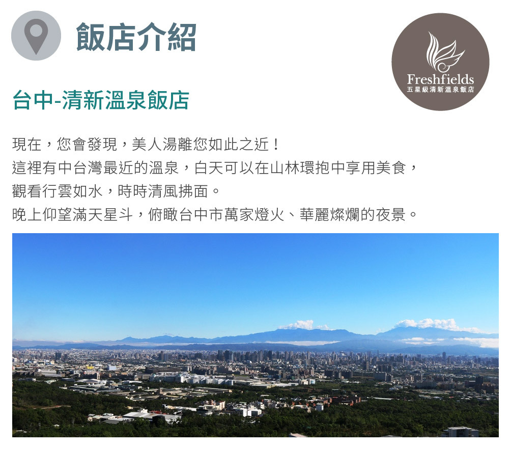 現在,您會發現,美人湯離您如此之近!這裡有中台灣最近的溫泉,白天可以在山林環抱中享用美食,觀看行雲如水,時時清風拂面。晚上仰望滿天星斗,俯瞰台中市萬家燈火、華麗燦爛的夜景。
