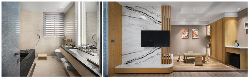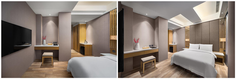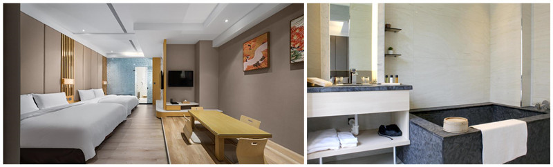 房型為兩大床,原木地板小客廳,高級月光石泡湯浴池,房間總坪數約11-14坪,獨立式空調設計。