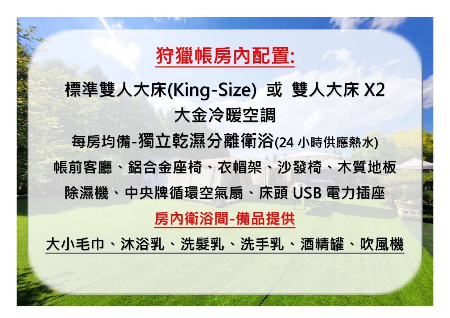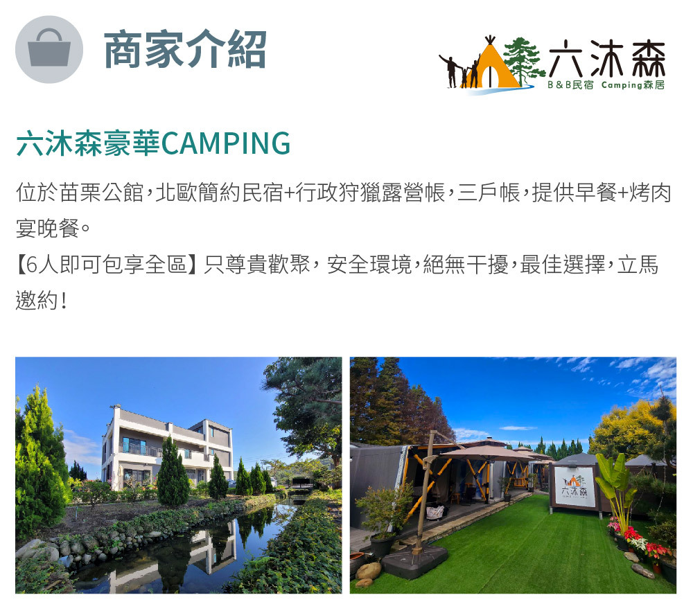 北歐民宿+豪華行政狩獵露營帳【來賓8位即可包區棟】(至多接待24位),衛浴專屬一對一尊貴歡聚,曠世獨立,位於苗栗平原森林系~一日僅接待一團~園區1500 坪~歡迎您們蒞臨六沐森