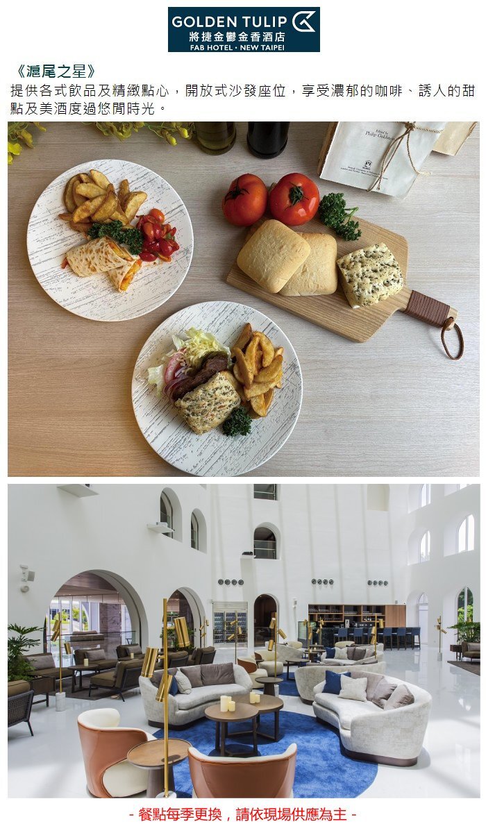 1.單張可2人於《淡水將捷金鬱金香酒店-滬尾之星》享平日雙人下午茶套餐乙客。(已含服務費)