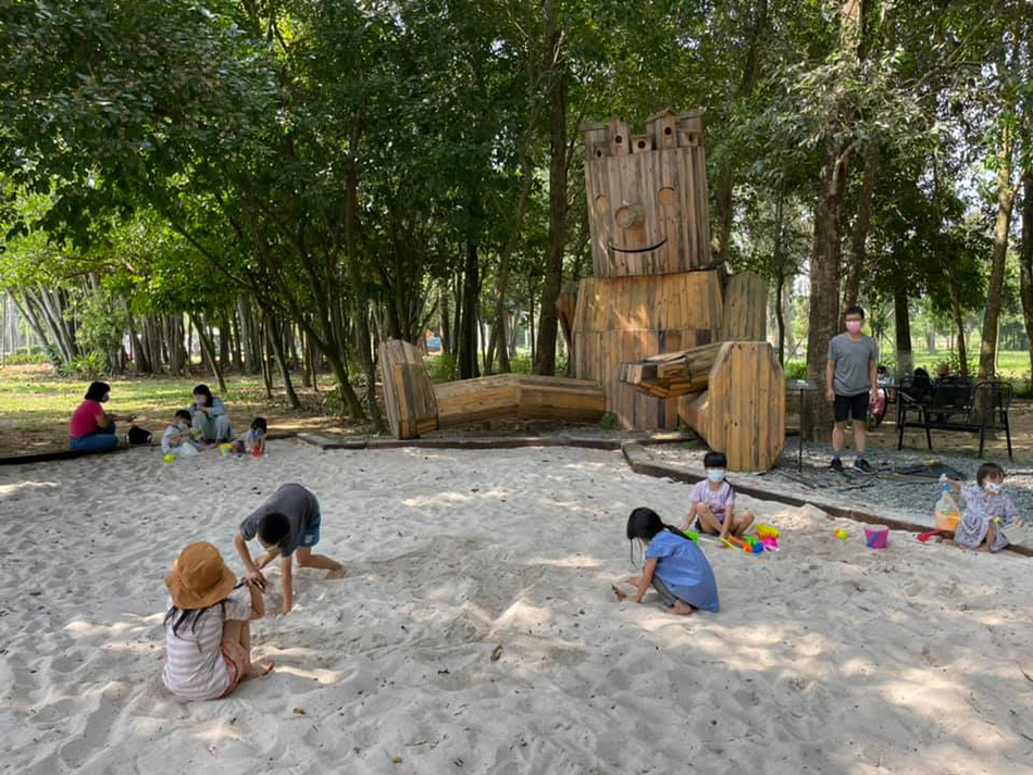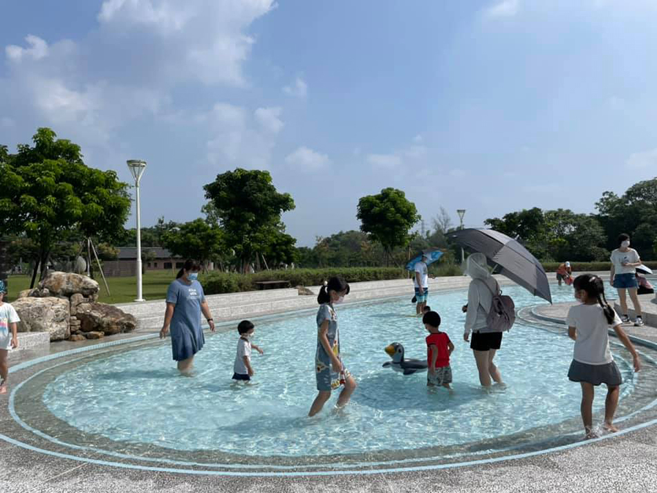 園區內有一個大水池,炎炎夏日就是要泡在冰涼的水裡玩耍!