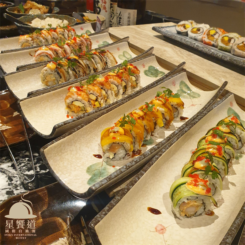 餐廳規劃有極鮮時令食材的日本料理區及有美食天堂之稱的亞洲料理,更貼心為外食族、上班族準備了健康高纖蔬果沙拉區,吸引大批甜點控朝聖的現做甜點區及繽紛甜點,大小朋友都喜愛的冰品區、飲品區及特選酒品區,搭配主廚精心料理的自選主餐,好好享受被美食療癒的美好時光。