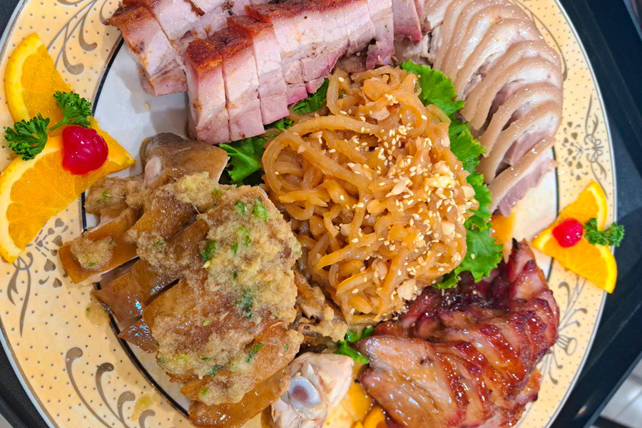 廣式玻璃脆皮燒鴨:輕嚙脆皮,感覺如玻璃碎裂,更是一絕。同時, 更有好評如潮的港式叉燒及脆皮燒肉提供於飲食者。