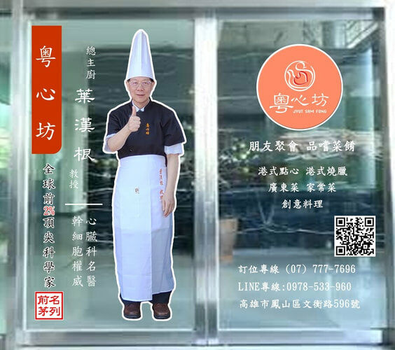 長年以心導管手術與醫學界研究,享有盛名的葉漢根教授,於兩年前,再生完成人生第二個夢想念頭,經一年籌備,今年七月十一日將「粵心坊港式餐廳」正式開張。