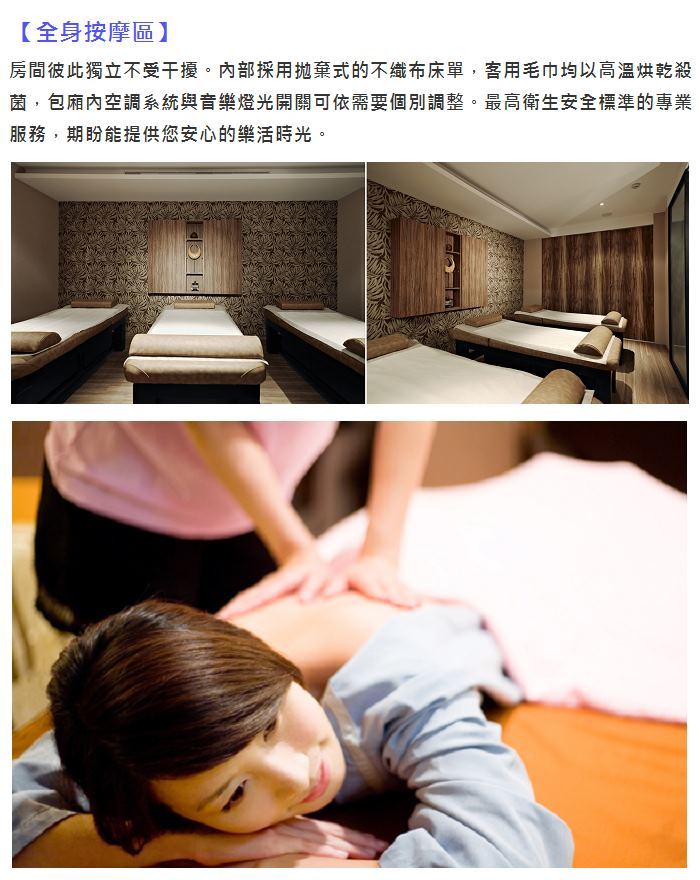 專業的按摩老師用體貼細心的手法為您消除身上的疲勞,