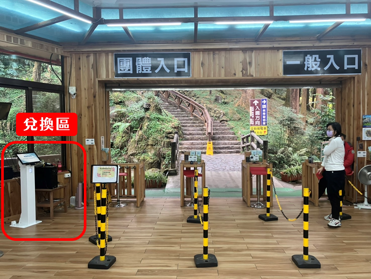 1. 持中台灣好玩卡或電子票證(QR Code),至園區「第一售票處」兌換區(團體入口旁立柱式驗票機),經由工作人員協助核銷並驗證身分後入場。