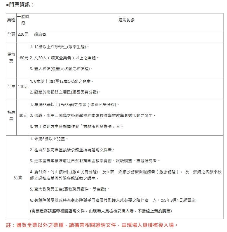 ◎ 請攜帶相關證件,經由工作人員查驗後入場,如不符身份請旅客逕行退票後於現場購買票券。