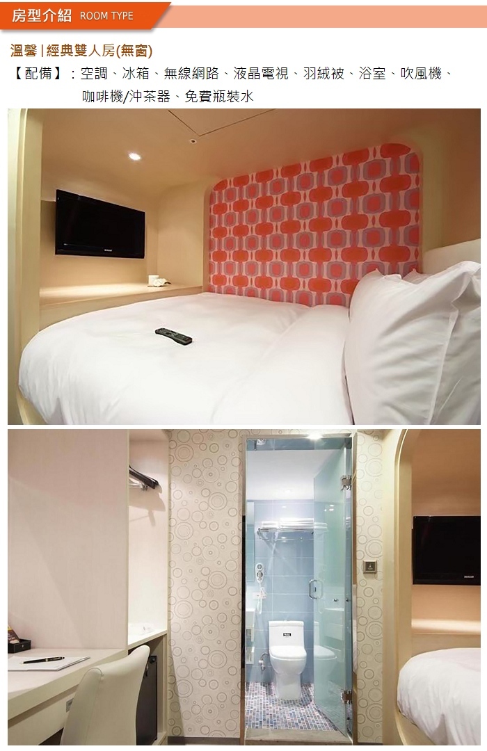 台中輕行旅溫馨或經典雙人房(無窗) 一泊一食專案