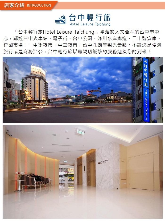 1.單券限2人於台中輕行旅住宿限《溫馨/經典雙人房(無窗)》乙晚,含早餐及備品2客。