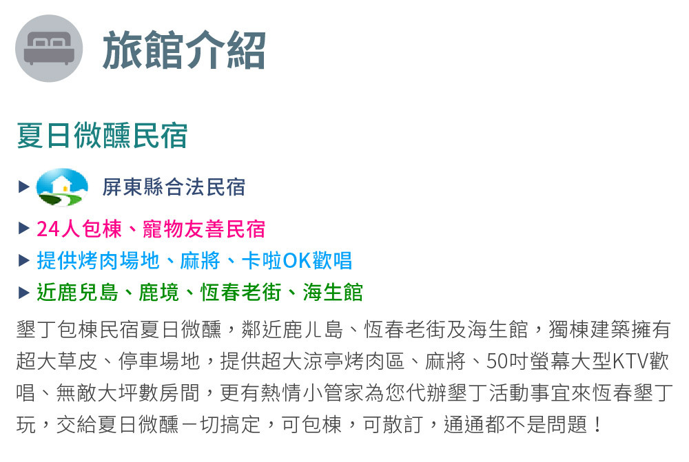 交通 & 鄰近景點:距離恆春老街、墾丁大街等旅遊地點不遠;交通較方便。