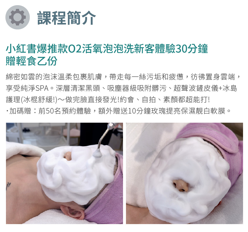 小紅書爆推款O2活氧泡泡洗新客體驗30分鐘贈輕食乙份