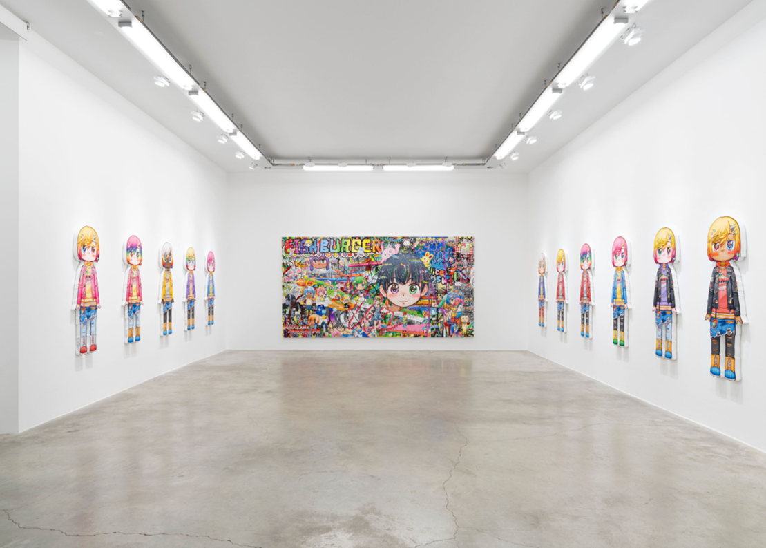 2024年,Mr.在巴黎貝浩登畫廊舉辦的展覽「Invoke It and a Flower Shall Blossom」(祈求它,花兒綻放)現場。攝影:Claire Dorn ©Mr./Kaikai Kiki Co., Ltd. 版權所有。圖片由藝術家及貝浩登畫廊提供