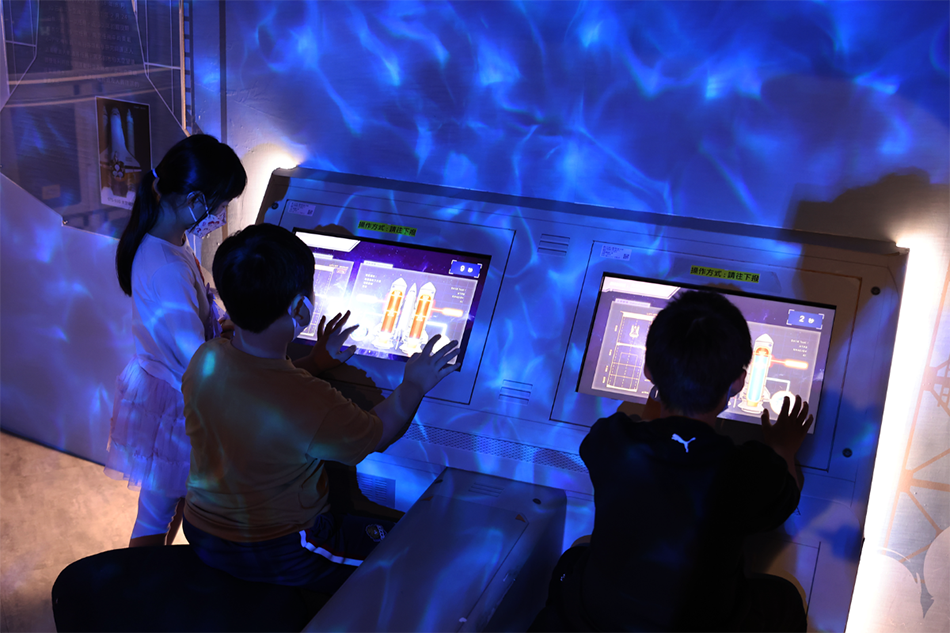 ▲ 「太空飛行探索」展示手法以大銀幕投影鑲嵌技術營造火星地表氛圍,虛實整合光雕美學呈現飛行演進,擴增實境連線互動,體驗先進國際太空探索,4D動態太空飛行劇場啟發太空探索夢想,實體結合多媒體電控薄膜技術,呈現臺灣太空研究與開發之技術