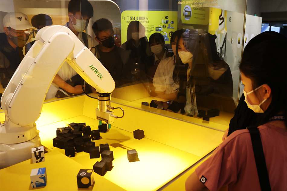 ▲ 動力與機械展示廳主要區分為機械原理、動力源、複雜機械等三大展示區。另有「智慧智造體驗專區」帶領進入智慧製造世代,其中「產業機器人」展示主要介紹產業機器人歷史與未來技術的發展趨勢,並藉與機械手臂的互動,可實際體驗智慧化機器人的應用。