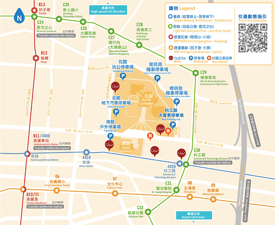 ▲ 科工館交通位置圖及大眾運輸工具路線圖