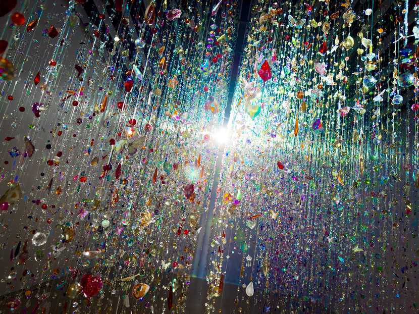 由2000條水晶串飾交織而成光與色彩的裝置藝術。蝴蝶、花朵、愛心與眼睛等圖案,不僅喚起少女珍藏如小寶石般的記憶,也象徵著視角從「被觀看者」轉變為「觀察者」的過程。作品同時向那些只能透過手工藝表達自我的女性致敬,閃爍的光芒宛如重現她們靜謐的熱情與祈禱。
