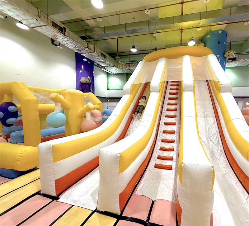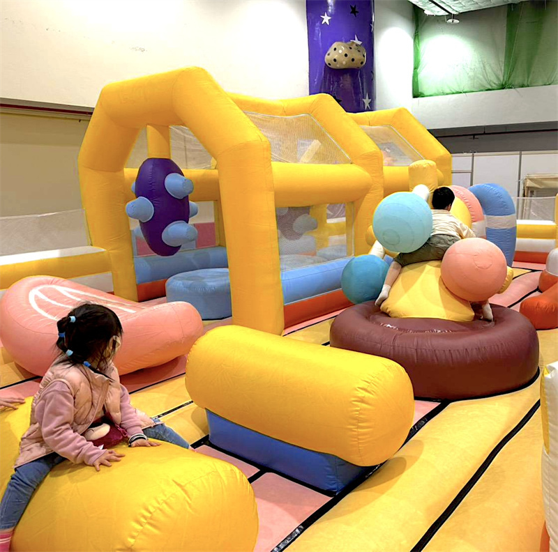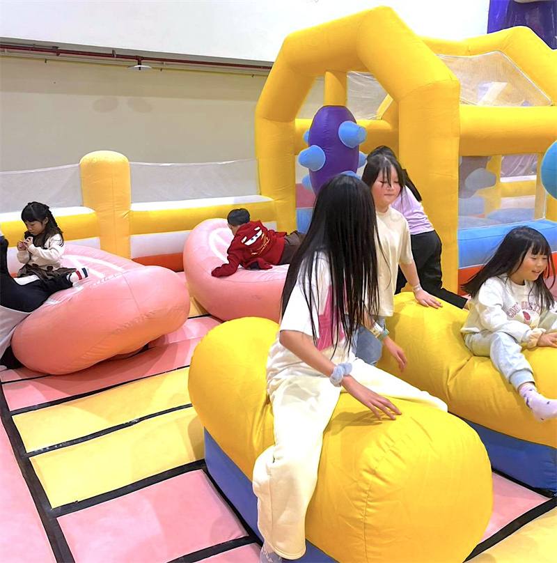 超大氣墊樂園蹦蹦跳跳玩派對,高六米雙滑梯暢快感十足,可玩躲貓貓收迷藏、球槌仙人掌...充滿刺激和驚喜。另外附設雪片積木區,可以腦力激盪和他人互動合作!