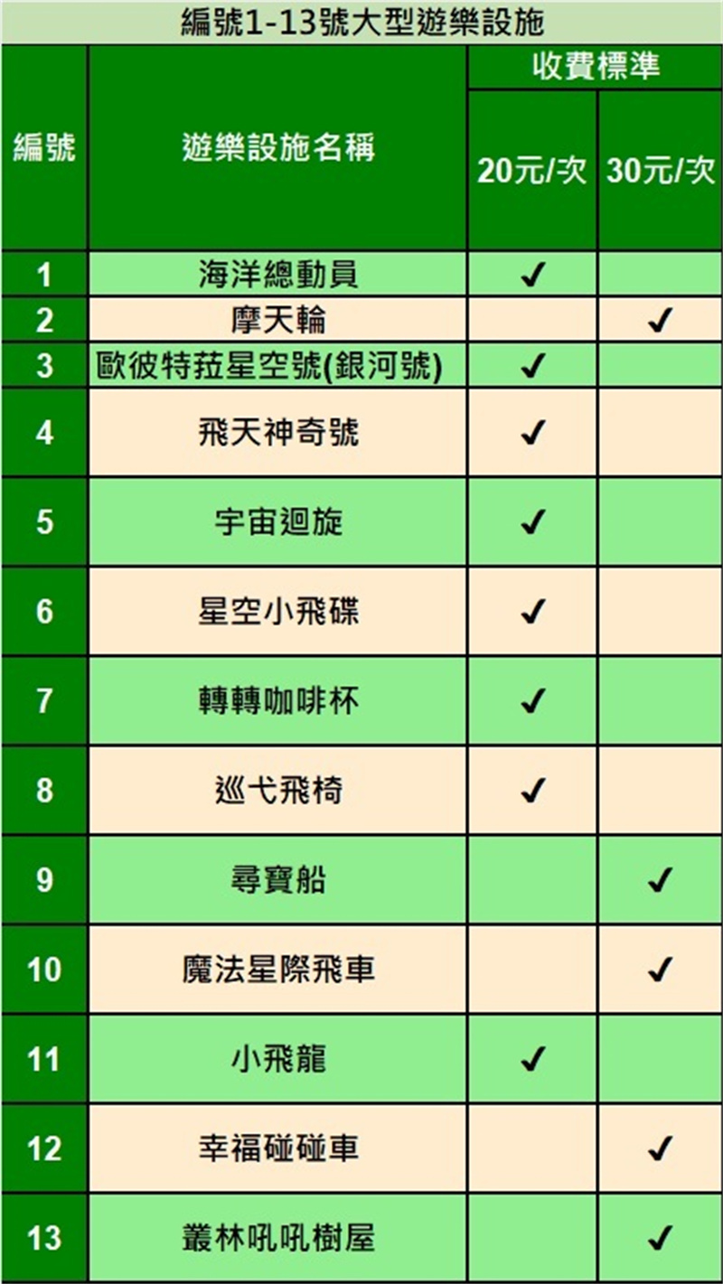 3. 部分設施有身高和年齡限制,且少數設施需額外付費,敬請留意。